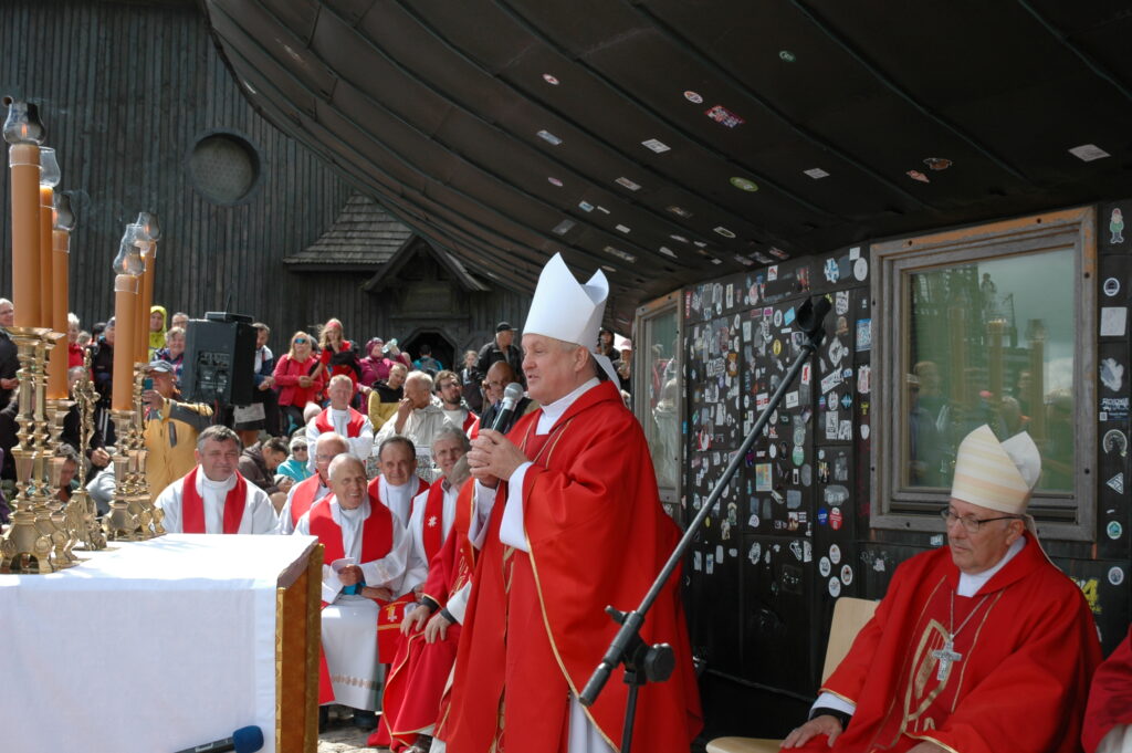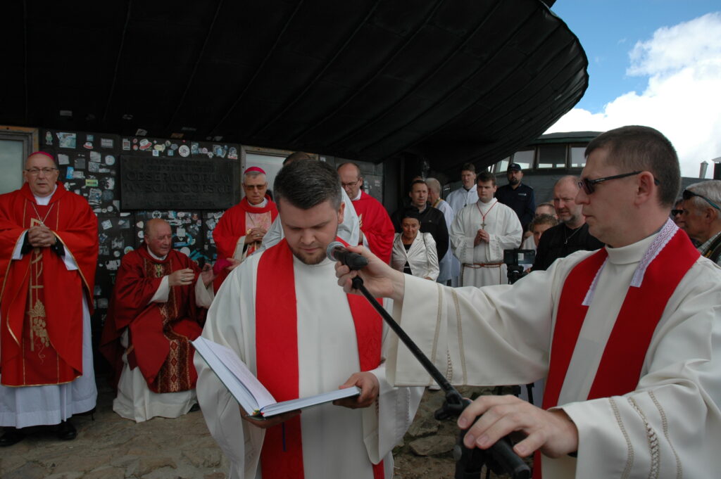 Przed rozpoczęciem Eucharystii ks. Paweł Oskwarek, Proboszcz Parafii pw. Nawiedzenia Najświętszej Maryi Panny w Karpaczu, Dziekan Dekanatu Karpacz przywitał Biskupów, Wojewodę Dolnośląskiego Pana Macieja Awiżenia, Marszałka Województwa Dolnośląskiego Pana Pawła Gancarza, Przewodniczącego Sejmiku Województwa Dolnośląskiego Pana Jerzego Pokoja, samorządowców, a wśród nich Władcę Karpacza Pana Radosława Jęcka, licznie zgromadzonych Przewodników Górskich, Pracowników Karkonoskiego Parku Narodowego, Pracowników GOPR, Policji, Straży Granicznej oraz wszystkich zgromadzonych na szczycie.